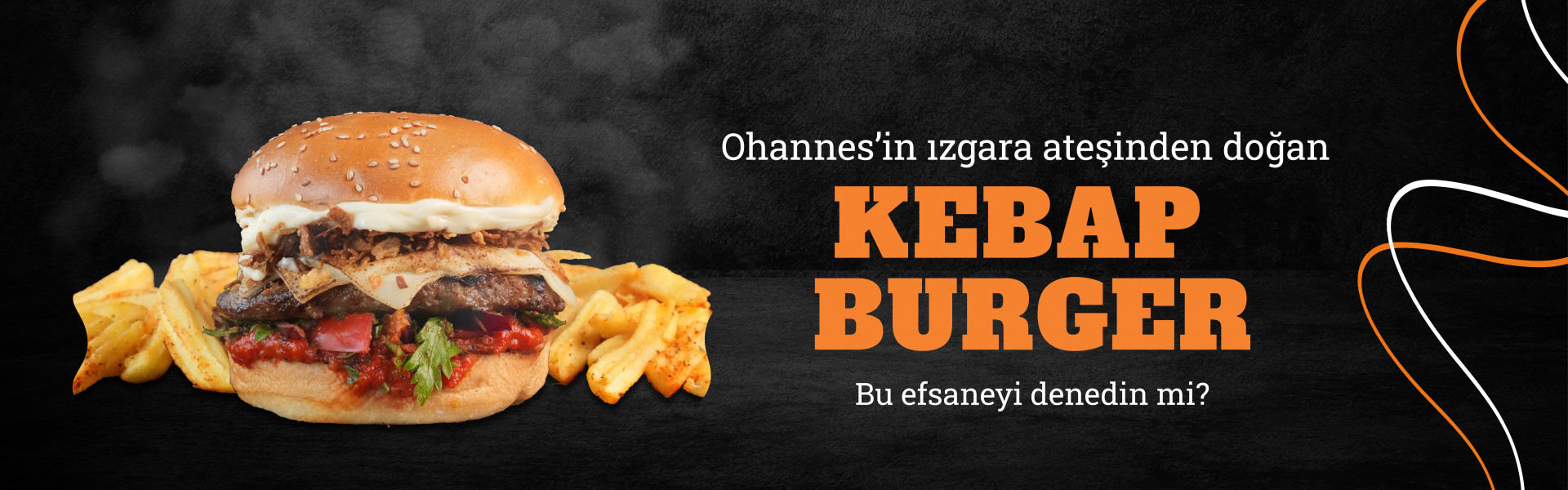 130 gr Hamburger Köftesi, İsli Mayonez, BBQ Mayonez, Jülyen Biftek Dilimleri, Dana Bacon, Izgara Kaşar, Ohannes Çıtırı, Domates, Marul, Baharatlı Patates Kızartması ve Aioli sos ile